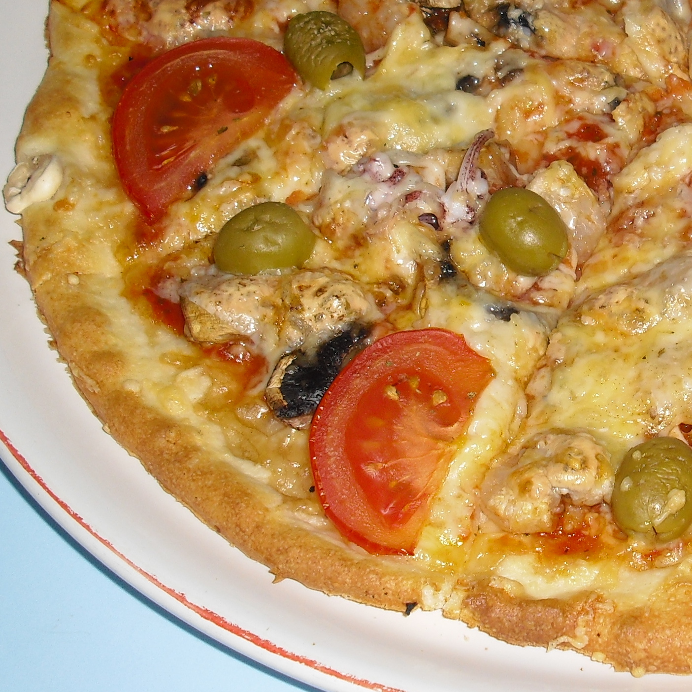 (tomaty, mořské plody, rajčata, žampióny, olivy,mozzarella,sýr)alergeny-lepek,vejce,mléko,korýši,měkkýši