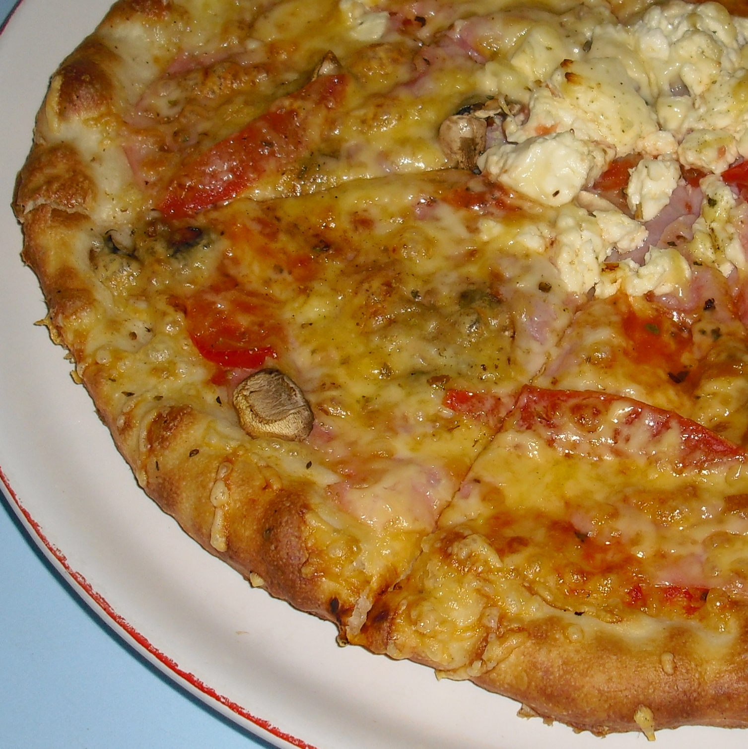 (tomaty, 4 druhy sýra, šunka, žampióny, rajčata)alergeny-lepek,vejce,mléko