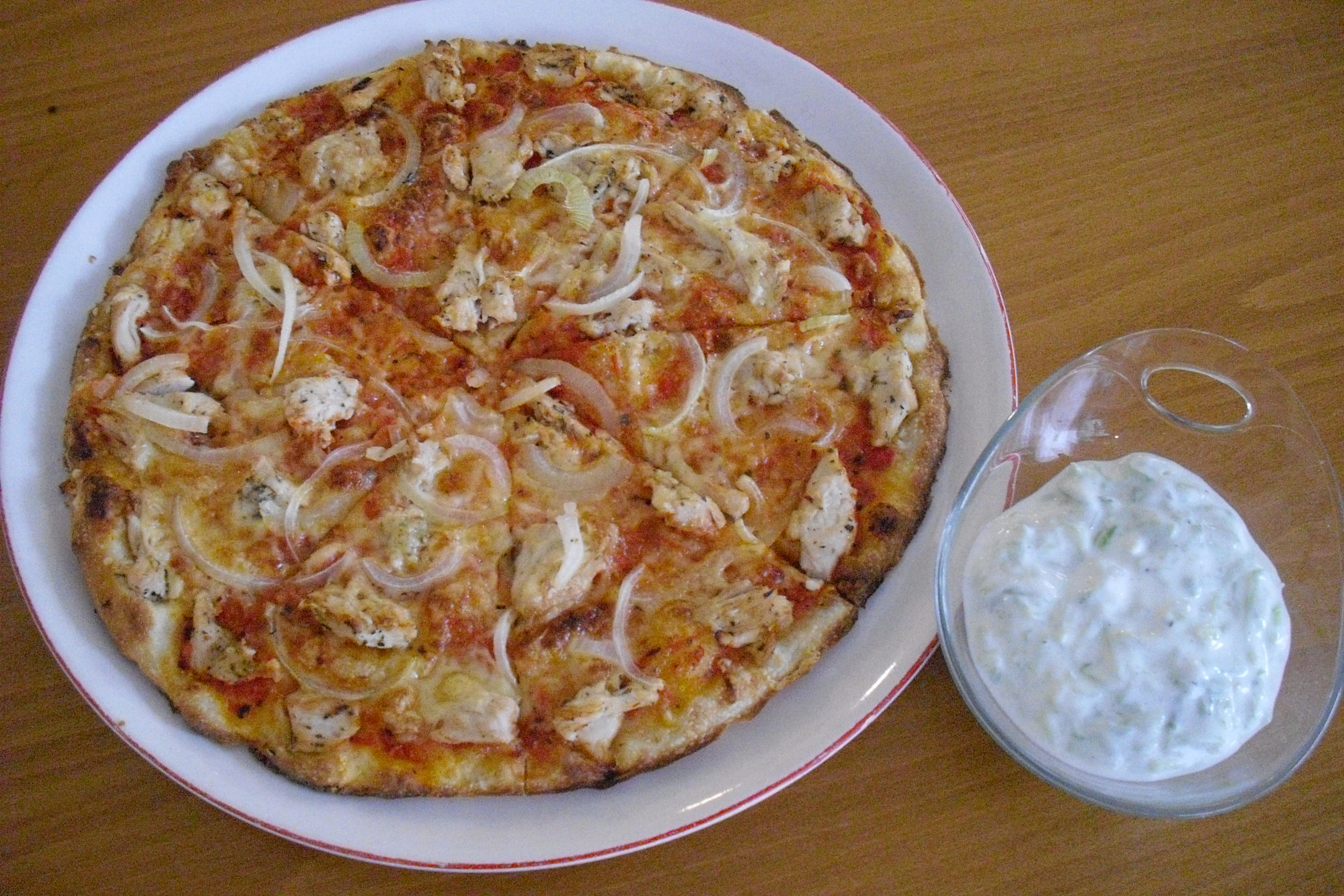 - 30. Pizza Gyros (tomaty,kuřecí gyros,cibule,tzatziky,sýr) 43 cm