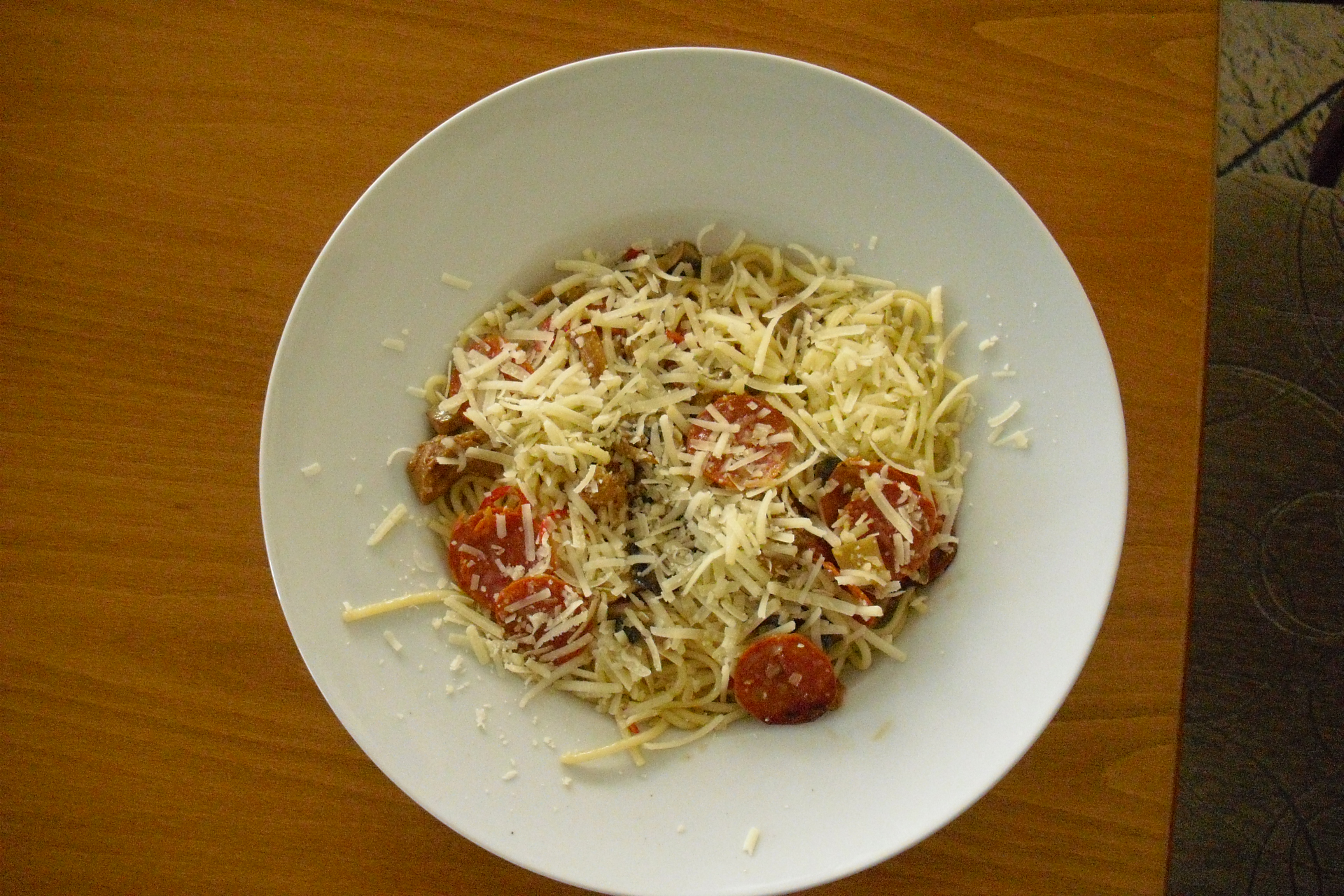 Špagety s chorizo klobásou a houbami177 Kč/ ks154 Kč bez DPH