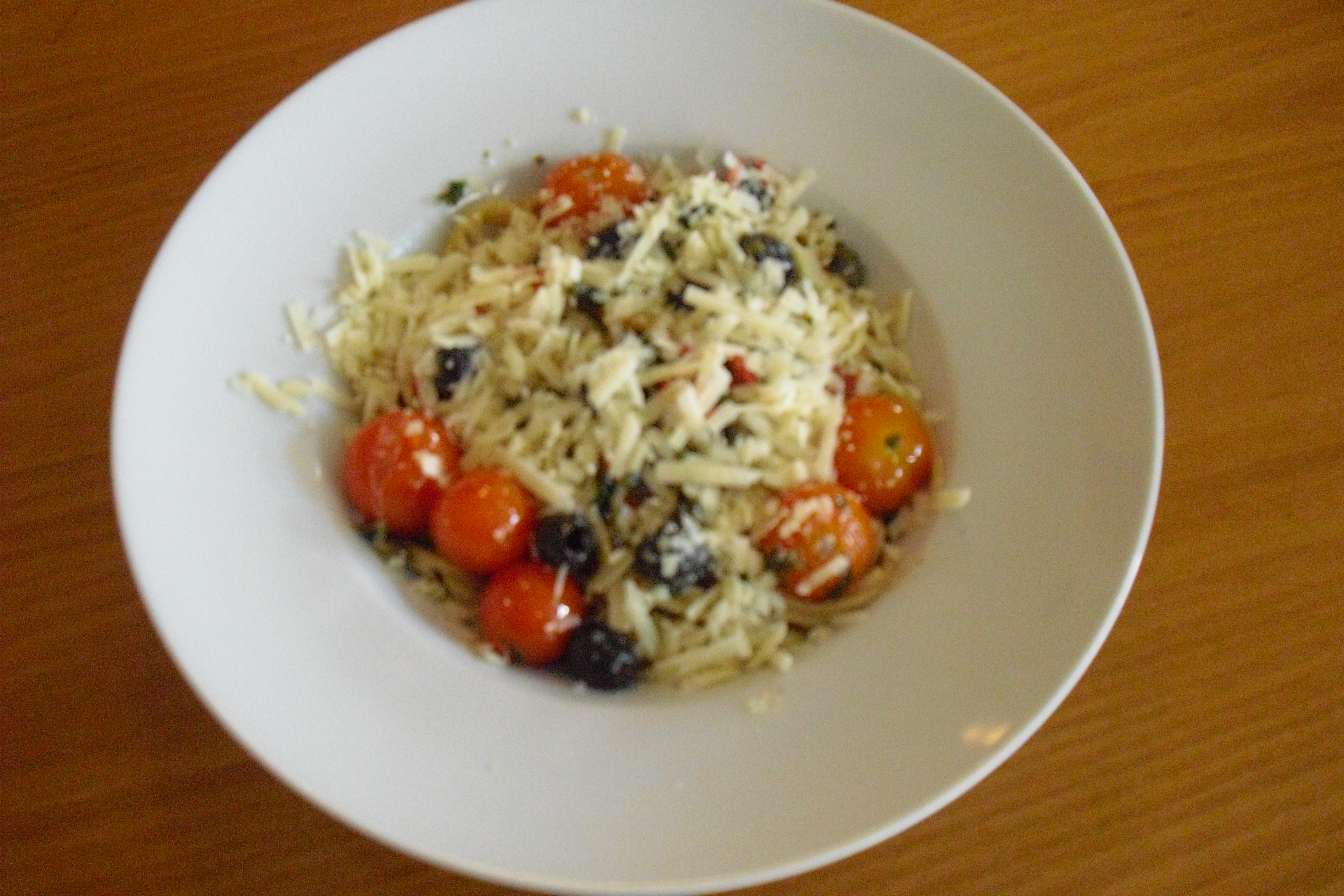 Špagety se sardelemi(parmazán,sardele,kapary,olivy,cherry rajč.,chilli papr.)