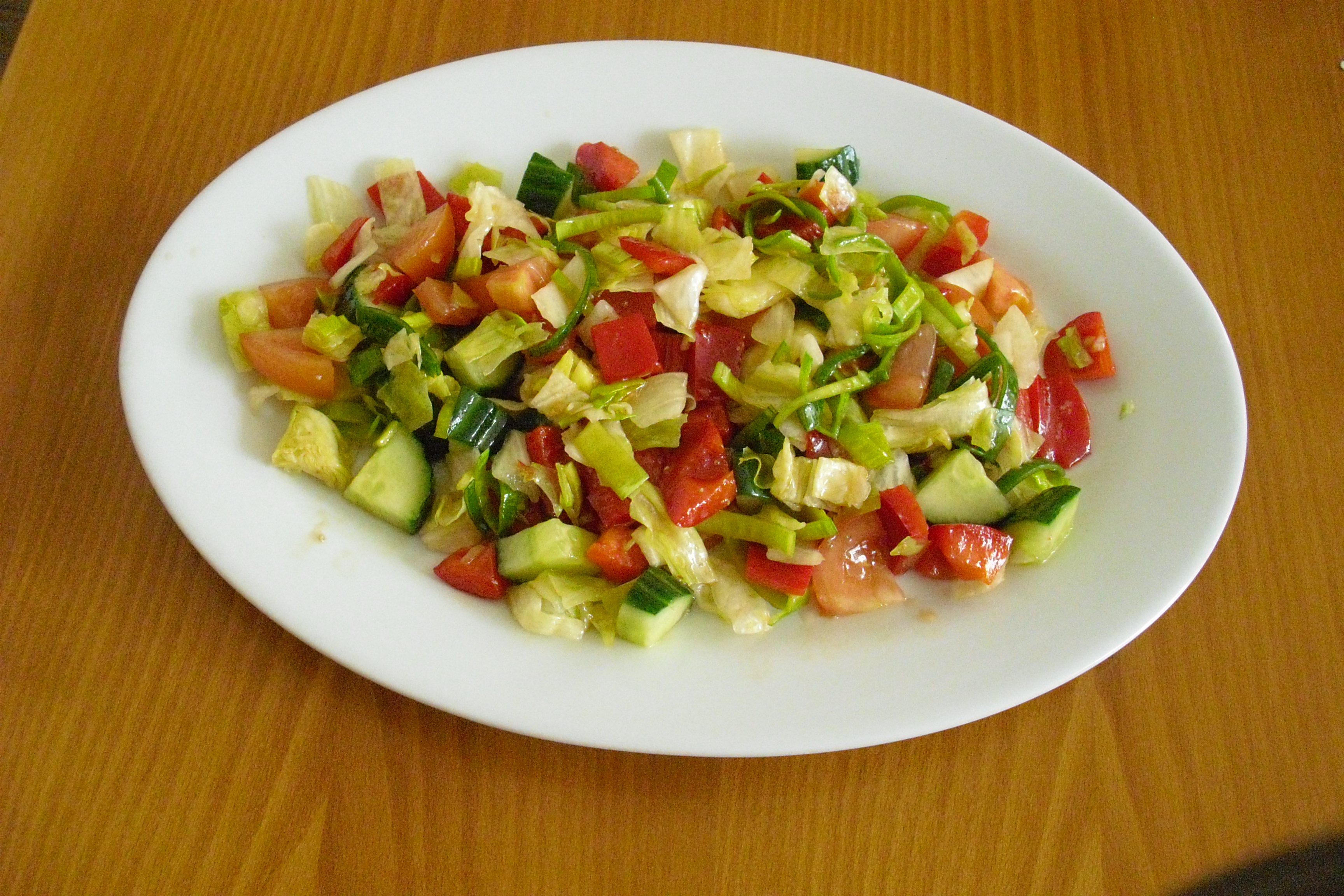 (ledový salát, paprika, rajče, okurka, pórek, zálivka)