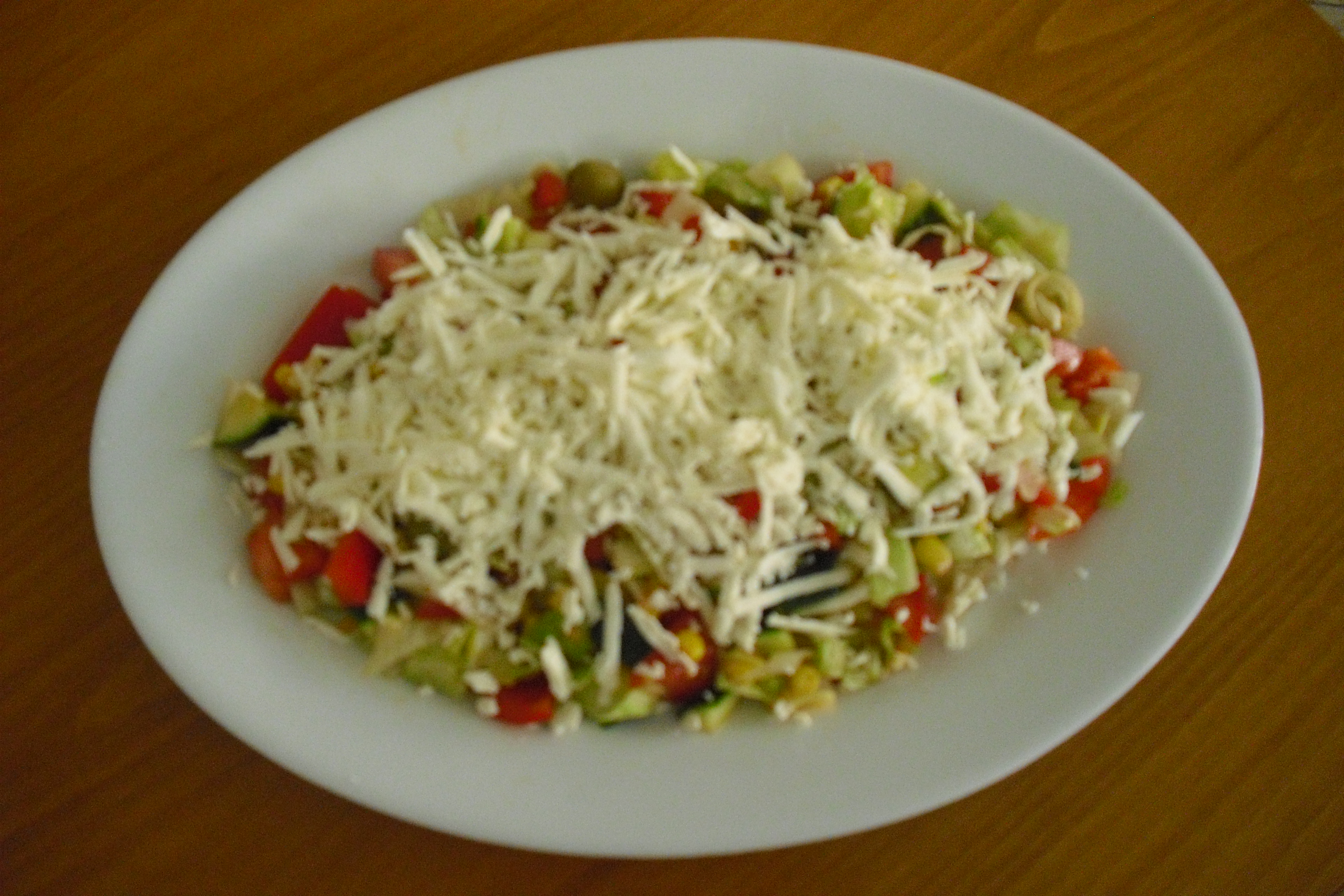Balkánská salátová mísa (led.salát,papr.,rajče,okurka,pór,olivy,kukuř.,balk.sýr)